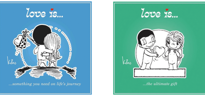 Wer kennt diese Karikaturen „Liebe ist…“ nicht? Die Karikaturen wurden ursprünglich 1968 von Kim Casali für ihren Freund und späteren Mann Roberto gezeichnet. Sie entwickelten sich zu einem weltweiten Phänomen, weil Robert die Karikaturen heimlich an die „Los Angeles Times“ schickte.